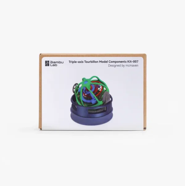 El kit de componentes del modelo de tourbillon de tres ejes contiene todos los componentes de hardware necesarios para montar un modelo de tourbillon de tres ejes. Para completar el ensamblaje de una pieza completamente funcional, los usuarios también deben descargar los archivos del modelo e imprimir en 3D las piezas restantes.